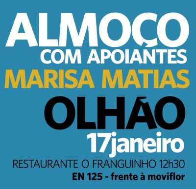 No domingo, tem lugar o almoço/convívio com os apoiantes algarvios de Marisa Matias. Será disponibilizado transporte coletivo (gratuito) a partir de Lagos e Vila Real de Santo António.