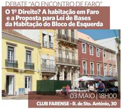 No dia 3 de maio, sexta-feira, terá lugar no Clube Farense às 18:30 mais um Ao Encontro de Faro, promovido pela núcleo local do Bloco de Esquerda.
