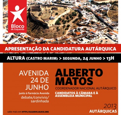 Esta iniciativa conta com a participação de Alberto Matos, Coordenador Nacional Autárquico do Bloco de Esquerda. Ver evento no facebook: https://www.facebook.com/events/150803135107349/