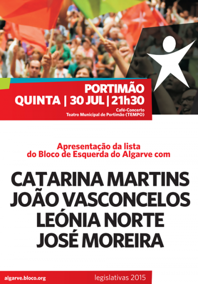 A iniciativa realiza-se no Teatro Municipal de Portimão - TEMPO -, pelas 21h30, e conta com a presença de Catarina Martins, porta-voz do Bloco, bem como de todos os candidatos e candidatas da região.
