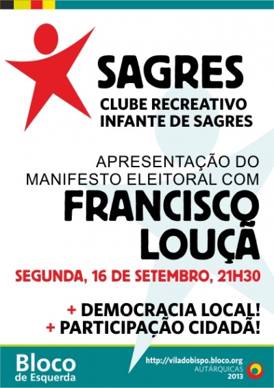 Esta iniciativa acontece na segunda-feira, dia 16 de setembro às 21h30, no Clube Recreativo Infante de Sagres e conta com a participação de Francisco Louçã.
