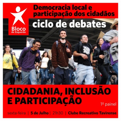 Neste sentido o Bloco de Esquerda organiza um conjunto de paineis temáticos, para deabter a democracia local e a participação dos cidadãos, sendo o primeiro sobre "cidadania, inclusão e participação".