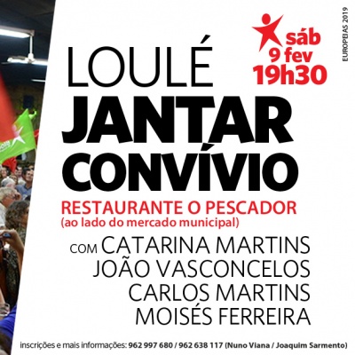 No próximo dia 9 de fevereiro realiza-se em Loulé um jantar-convívio de âmbito distrital com intervenções de Catarina Martins, dos deputados João Vasconcelos e Moisés Ferreira, e do deputado municipal Carlos Martins.