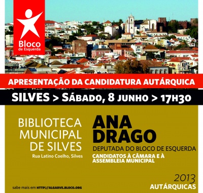 17:30 – Biblioteca de Silves - apresentação da Candidatura, com a presença de Ana Drago.