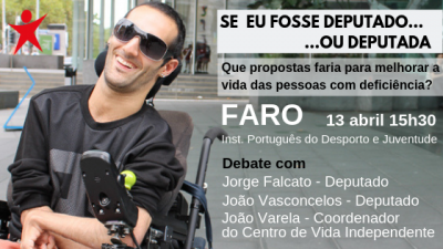 O deputado Jorge Falcato percorre o país para ouvir de viva voz essas propostas e debatê-las. Estará em Faro no dia 13 de abril às 15h30 horas no Instituto Português do Desporto e da Juventude (IPDJ), onde também teremos, para contribuir para este importante debate, João Varela, Coordenador da Delegação do Algarve do Centro de Vida Independente e o deputado do Bloco de Esquerda, João Vasconcelos.