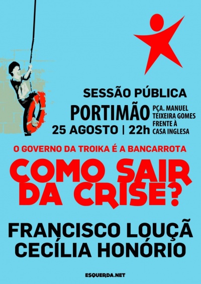Sessão Pública com Francisco Louçã, Cecília Honório e João Vasconcelos. Portimão, 25 de Agosto, Praça Manuel Teixeira Gomes - frente à Casa Inglesa, 21h30.