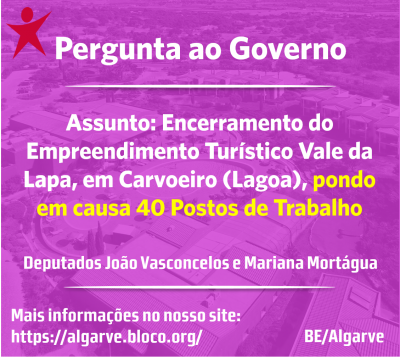 Assunto: Oitante, S.A, decide encerrar, unilateralmente, Empreendimento Turístico Vale de Lapa, em Carvoeiro, para escolha de novo Operador Turístico, sem caderno de encargos, pondo em causa 40 postos de trabalho e milhões de euros do Estado.