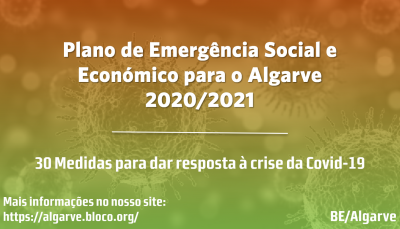 A Comissão Coordenadora Distrital do Bloco de Esquerda/Algarve apresenta um Plano de Emergência Económico e Social do Algarve, para dar resposta às consequências da Covid-19, assente nas seguintes PROPOSTAS: