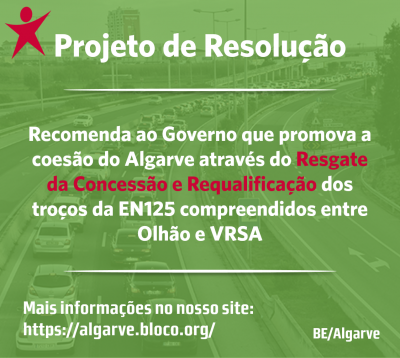O que se impõe é o governo proceder, com urgência, ao resgate da concessão e à sua requalificação definitiva. O Bloco de Esquerda defende esta posição e que é a alternativa viável neste momento. Trata-se de uma posição também defendida, de forma consensual, por todas as Câmaras do Algarve, incluindo as Câmaras de Olhão, Tavira, Castro Marim e Vila Real de Santo António, (conforme veiculado pela Comunidade Intermunicipal do Algarve/AMAL), pelo Movimento de Cidadania dos Utentes da EN125 – Sotavento e por outras entidades e cidadãos do Algarve.